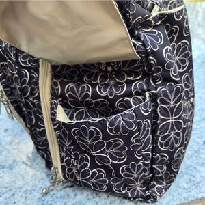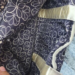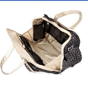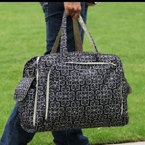 Ju Ju Be's Be Prepared is part of the premiere collection. Are you an over packer, do you have more than one in diapers, twins, how about the perfect bag for overnight trips or the airplane. Be Prepared features two exterior insulated bottle pockets, a structured bottom with luggage feet, full zip-down mommy pocket for super access, a picture pocket to keep photos handy when bragging to friends, tote handles that can be tucked away and hidden when not in use, and an adjustable shoulder strap with a memory foam pad and grippy textile underneath. The unique main zipper closure system makes for easy access while color coded tabs let you know which pocket is for which child. This bag has all of Ju Ju Be's favorite features from crumb drains to teflon. Measures 18.5" x 14" x 6.5".