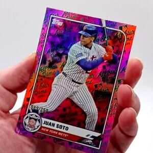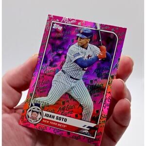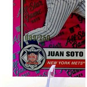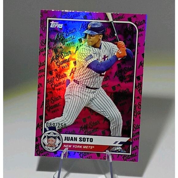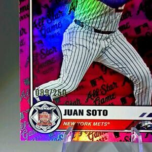 Juan Soto of the New York Mets batting All Star Game Pink Foil Serial numbered card to 250.
