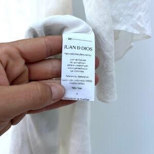 Juan de Dios Lisa Linen Midi Dress Embroidered Palm White Medium Caftan Cover-Up