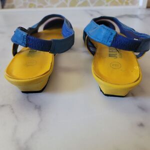**had severe scuffs in leather I had to repaint. The yellow interior is the natural color . The blue and pink i matches as best as I could