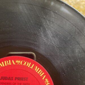 Original 1984 pressing of Judas Priest's Defenders of the Faith LP on US Columbia BL-39219. The cover has a little gentle shelf wear but really crisp and clean overall. Light ringwear, and a little light cornerwear, Comes with the original inner sleeve great condition. The record itself has some smuges and light scratches. I took some pictures so review them well.