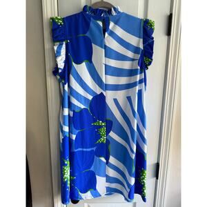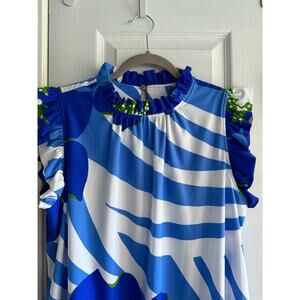 Jude Connally Blue Sleeveless Tropical Floral Print Dress Made in US Size XL
