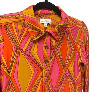 Jude Connally Button Front Orange Pink Geo Print Jude Cloth Top Womens Small