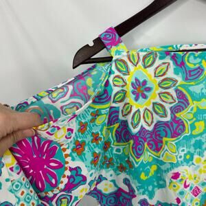 Jude Connally Cold Shoulder Shift Dress Small Pink Teal Bohemian Beachy Vacation