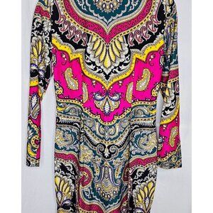 Jude Connally Collared 1/4 Zip Long Sleeve Paisley Print Dress Multicolor Small