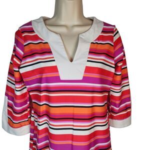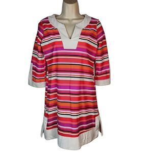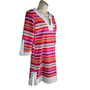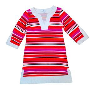 Jude Connally Dress Holly Tunic Short Pink Orange White Stripe Mod Stretch XS