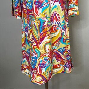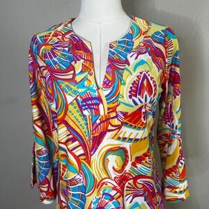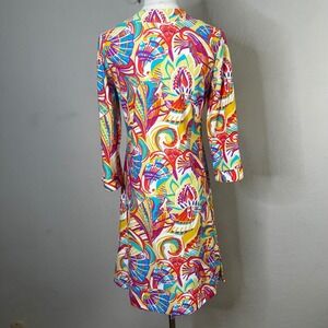 Jude Connally Dress Size S Colorful Print 3/4 Sleeve Knee Length Made in USA