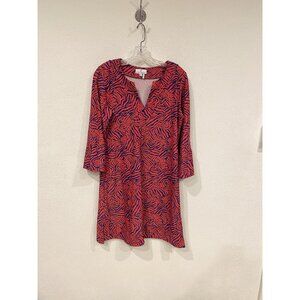 Jude Connally Dress Womens Medium Red Blue Zebra Print 3/4 Sleeve Tunic USA