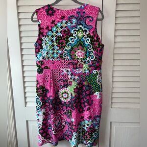 Jude Connally Ellie Shift Dress V Neck Sleeveless Retro Print Floral XL Beachy