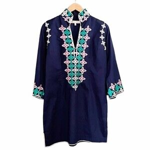 Jude Connally Embroidered Cotton Navy 3/4 Sleeve Tunic Women’s Size Medium