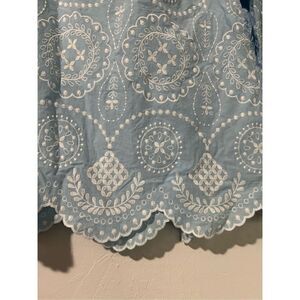 Jude Connally Embroidered white eyelet print scalloped hems light blue xs top