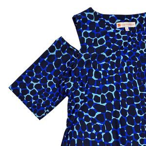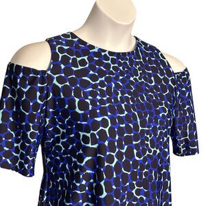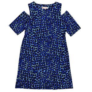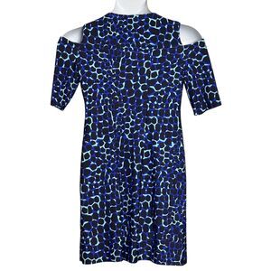 Jude Connally Knee Length Dress Cold Shoulder Nylon Blue Animal Print Sz Medium