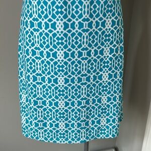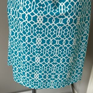 Jude Connally Turquoise Blue Geometric Print Halter Dress.