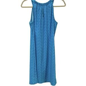 Jude Connally Lisa Halter Bright Blue Chain Pattern Dress Small Keyhole Stretch