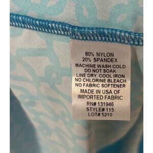 Jude Connally Lisa Halter Keyhole Bright Blue Graphic Chain Pattern Jersey Knit Stretch Size Small