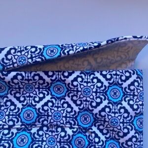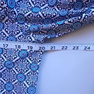 Jude Connally Megan Shift Dress V-Neck 3/4 Sleeve Blue Print Mod Cloth Tunic L
