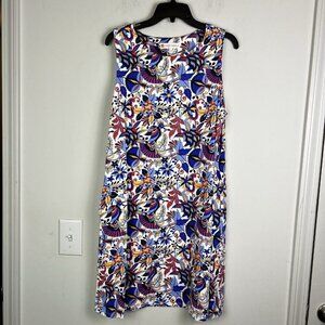 Jude Connally Melody Dress womens size large blue hummingbird patterned