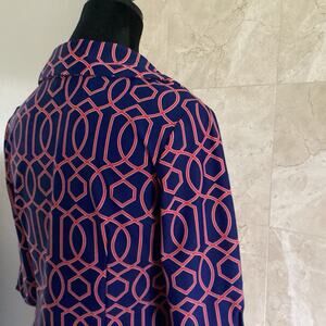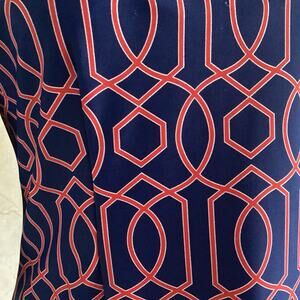 Jude Connally Michelle Dress Womens Small Navy & Red Geometric Pattern, 3/4 Sleeve Collared with Stretch ($268 retail)
