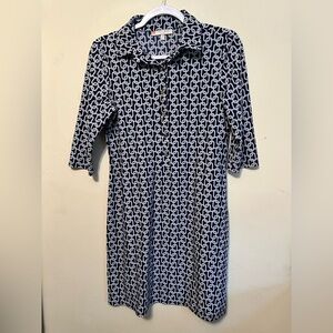 Jude Connally Navy Susanna Dress Chain Link 3/4 Sleeve Dress Size Small