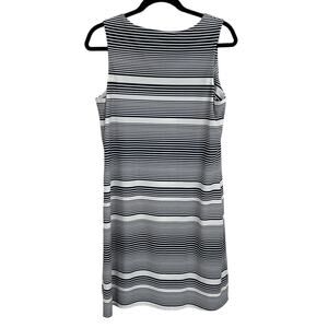 Jude Connally Navy & White Stripe Sleeveless Nylon Sheath Dress Womens Large