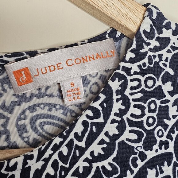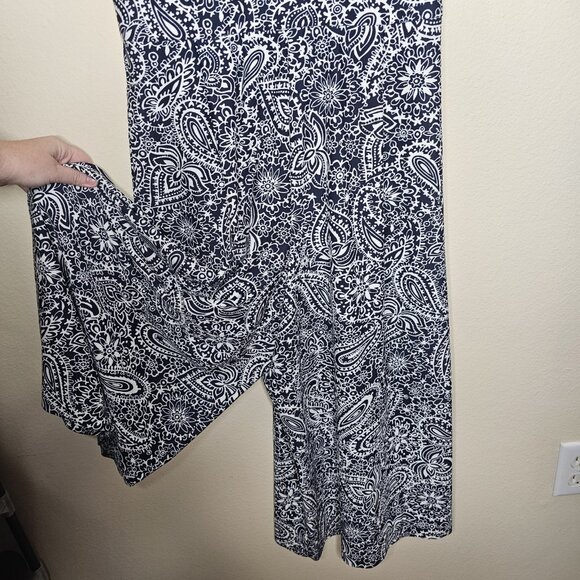 Jude Connally Paisley Cropped Wide Leg Jumpsuit Pockets Navy Blue Womens Sz S