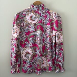 Jude Connally Palm Beach Paisley Pink Long Sleeve Top Ruffle V Neck Size S