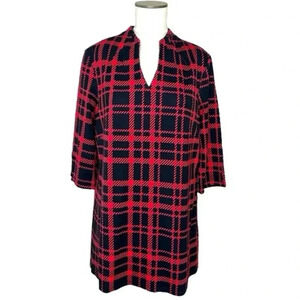 Jude Connally Ryan Ponte Knit Tunic Top In Red Black Plaid Size M