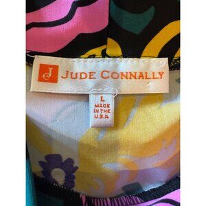 Jude Connally Shirt Women Large Green Purple Floral Jersey Macy Mock Neck Boho