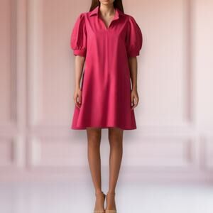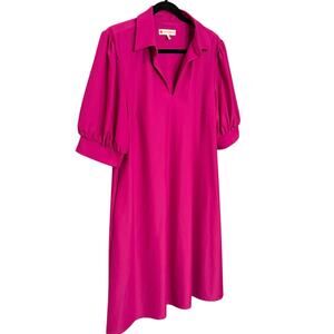 Jude Connally Size Large Emmerson Puff Sleeve Collared Shift Dress Fuschia Pink Women’s
