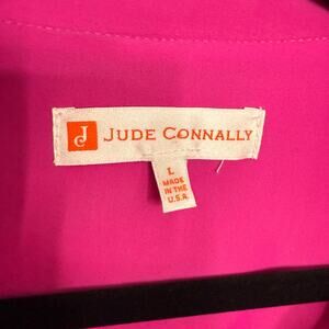 Jude Connally Size Large Emmerson Puff Sleeve Collared Shift Dress Fuschia Pink