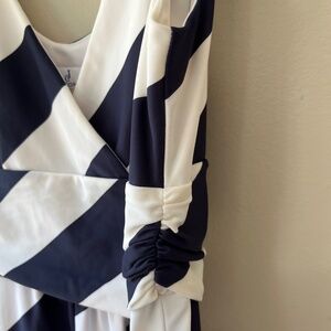 Jude Connally Sz M Stretch Long Maxi Dress Nautical Navy White Striped V Neck