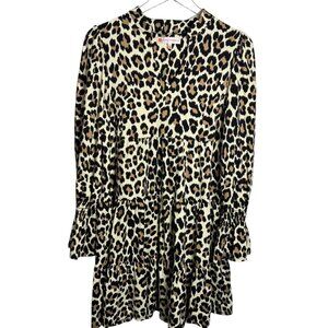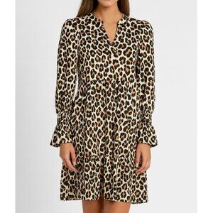 Jude Connally Tammi swing Dress tiered animal leopard print long sleeves small