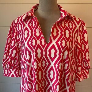 This modern style features a V-neckline, puff sleeves, and convenient pockets. A darling addition to your wardrobe, perfect for both dressing up or down.