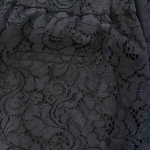 Fully lined black lace pants from Jude Connally. Cropped length, approx 27” inseam, 10” rise, and 14” across waist laying flat. Elastic waist, pull on style with faux fly. Excellent condition.