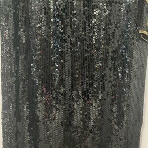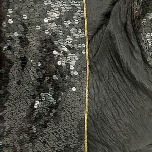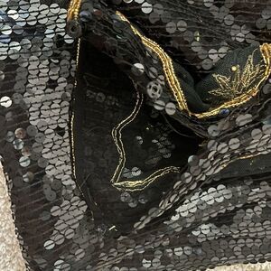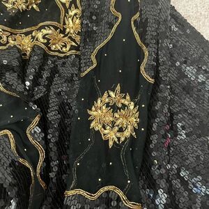 Judith Ann Creations Black & Gold 100% Silk Sequins Beaded Long Sleeve Gown Sz S
