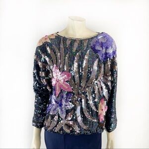 Judith Ann Creations Exotic floral Sequin Blouse size M