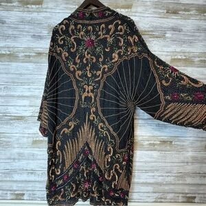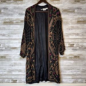 Judith Ann Creations Vintage Beaded Duster Jacket Coat 1980s Silk Designer Art