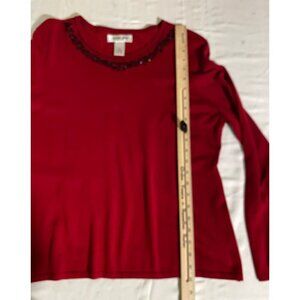 Judith Hart Collection Red Beaded Long Sleeve Top XL Viscose Silk Blend Sweater