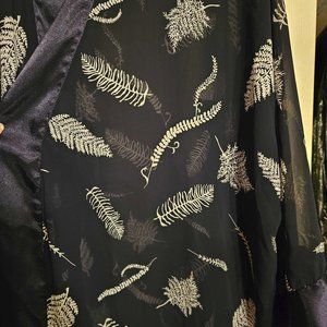 Judith Hart Intimates Robe Size 3X Navy Fern Print Sheer