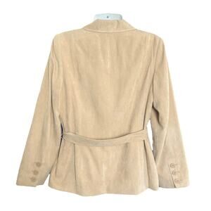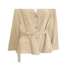 Stunning belted jacket from Judith Hart Petites in great, pre-owned condition. Crafted with polyester outer shell material and polyester lining material, this mid-length jacket is perfect for any occasion. The solid pattern and tan color make it versatile to pair with any outfit. The jacket features a tie and button closure, long sleeves, and pockets, making it practical and stylish. Ideal for travel, party, casual, formal, workwear, or business, this lightweight jacket is perfect for all seasons. The jacket is machine washable, making it easy to maintain. This women's size 14P jacket is designed with collars and features a three-button front, adding to the elegance of the jacket.
