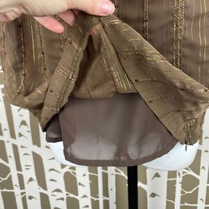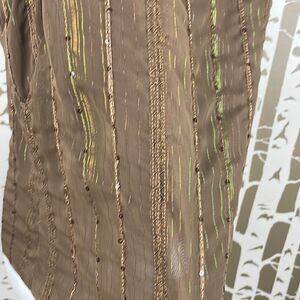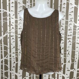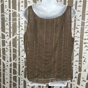 Judith Hart Collection NEW $49 Golden Touch Sequined Tank Top sz 16. Features a sheer cocoa brown rainbow metallic pinstriped top (95% polyester, 5% metallic), vertical embroidered stitching accents, brown sequined accents, fully lined, hidden side zip entry. Brand new with tags (retail $49) and no flaws to note. Such a pretty piece for all of your dressy spring/summer events.