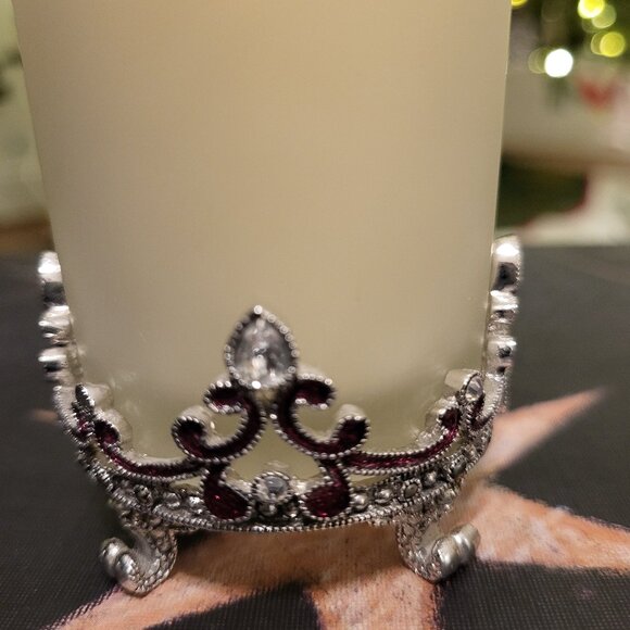 Judith Jack Crown votive candle holder of marcacites and sparkly purple stones. Candle included.