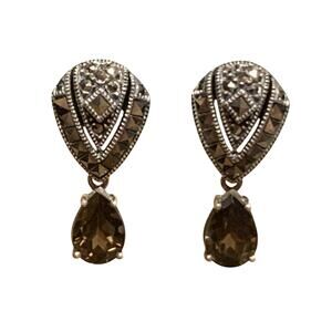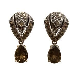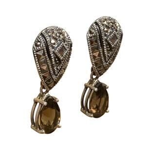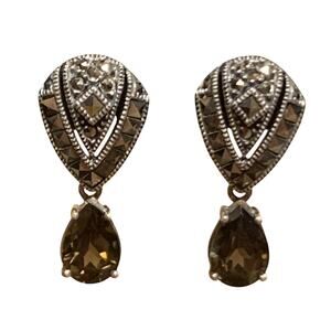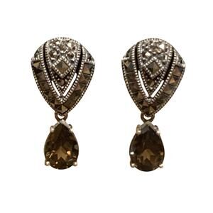 Judith Jack Earrings Sterling Silver, Marcasite and Topaz Dangle/Drop Vintage