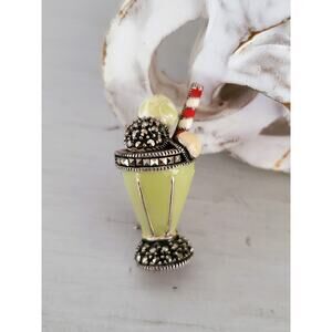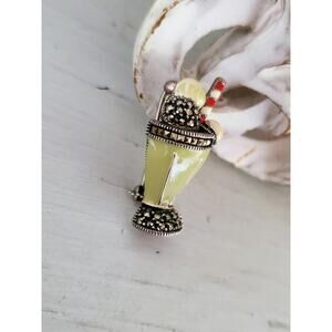 Judith Jack Sterling Silver Enamel Marcasite Ice Cream Soda Milk Shake Pin