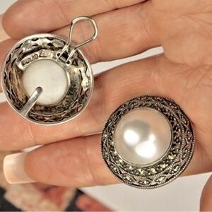 Judith Jack Sterling with Marcasite and Faux Pearl Set (choker & earrings)