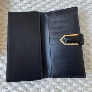 Judith Leiber Black Snakeskin Embossed Long Lady Leather Continental Wallet VTG