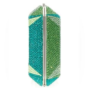 Judith Leiber Couture Slim Baguette Clutch, Silver Emerald Multi. Brand new, NWT