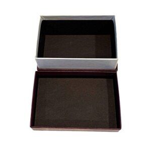 Judith Leiber empty gift boxes comes with ribbon, lids, and features the designer's logo as accents. The boxes are a solid purple color and made of paper material, with a lightweight design and custom monogramming available. Handmade in the United States, these designer storage boxes have a stylish and elegant look, perfect for storing small accessories or jewelry. The vintage-inspired theme adds a touch of nostalgia to these sophisticated boxes.