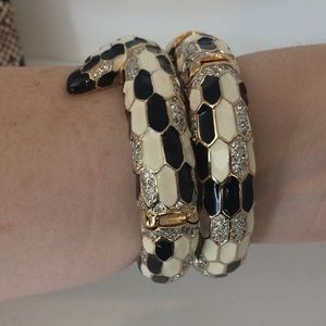 Rare Vintage Judith Leiber Enamel & Crystal Snake Bracelet/Cuff Set