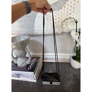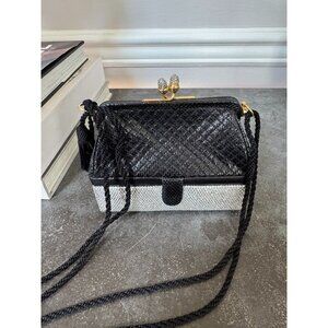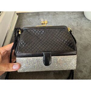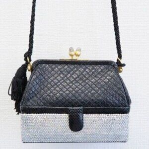 Judith Leiber Evening Shoulder Bag Purse w/Pouch Mirror Black Silver